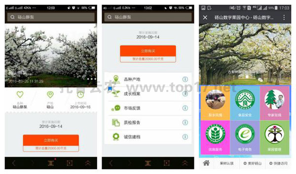碭山“數字果園”的托普云農綜合管理平臺還嵌入了農產品質量安全追溯系統,實現“從農田到餐桌”的全程可追溯化管理。該系統是區域農產品質量安全信息統一發布和查詢平臺,根據農產品“一物一碼”標準,消費者可以掃描農產品上附帶的而為買,準確了解農產品從生產、加工、物流、倉儲、銷售等全過程信息。