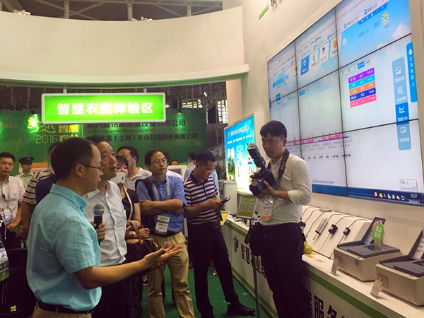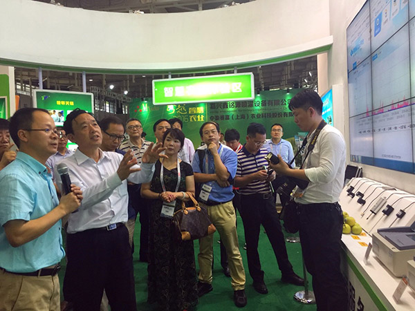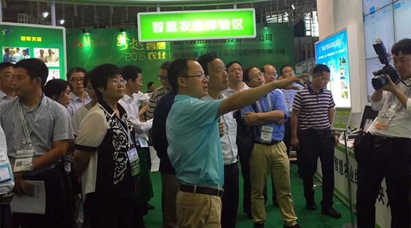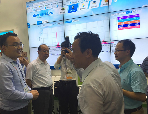 考察期間,屈冬玉副部長、唐珂司長、王小兵副司長一行來到浙江托普云農科技股份有限公司(以下簡稱“托普云農”)展位。公司常務副總朱旭華向其介紹匯報了公司一年來在物聯網方面的新成果和新進展,探討了智慧農業整體解決方案在政府職能端和產業應用端的框架和功能。