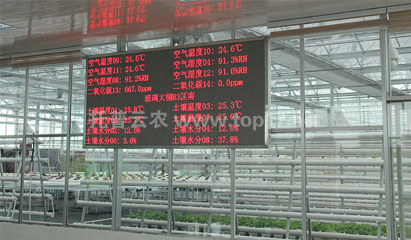 智慧農業溫室大棚信息展示屏用于展示農業大棚內各無線傳感器采集的環境數據和現場場景;同時展示屏也是展示智慧農業的一個窗口。溫室大棚無線監測系統實現了對影響農作物生長的環境傳感數據實時監控智能調節,采集現場的傳感信號包括:空氣溫濕度、光照、土壤溫度、CO2 濃度、土壤水分等,并實時準確的輸出指令智能控制包括大棚風機、微噴罐、滴灌、卷簾機、補光燈、CO2 發生器、CO2風機等現場設備。同時支持遠程無線信息傳輸功能,可配專用的攝像裝置,實現對現場農作物和環境真實狀況呈現。