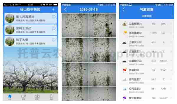 碭山“數字果園”的農業物聯網平臺正是由浙江托普云農科技股份有限公司(以下簡稱“托普云農”)負責搭建的。托普云農綜合管理云平臺涵蓋“數字果園”生長環境數據采集系統、視頻遠程可視化系統、多功能預警系統、農產品質量安全追溯系統、中央指揮系統、手機APP等。