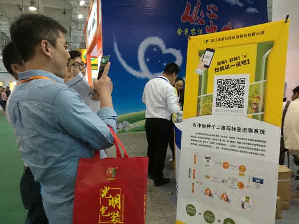 其中根據(jù)9月18日農(nóng)業(yè)部辦公廳印發(fā)的《農(nóng)作物種子標(biāo)簽二維碼編碼規(guī)則》要求,推出的農(nóng)作物種子二維碼標(biāo)簽追溯系統(tǒng),吸引了諸多專業(yè)客戶駐足。系統(tǒng)分為:包裝印刷環(huán)節(jié)、生產(chǎn)環(huán)節(jié)、流通環(huán)節(jié)、追溯環(huán)節(jié)等四個(gè)環(huán)節(jié)。操作靈活方便,可自動(dòng)生產(chǎn)唯一性二維碼,品種和批次獨(dú)立管理,又相互關(guān)聯(lián)。消費(fèi)者,執(zhí)法者,經(jīng)營者可通過手機(jī)二維碼獲得種子的品種信息、生產(chǎn)經(jīng)營者信息、品識(shí)別碼、追溯網(wǎng)址等內(nèi)容。許多客戶紛紛掃碼體驗(yàn),對系統(tǒng)的及時(shí)性和便捷性贊不絕口,部分客戶同公司營銷總監(jiān)陳麗婷就系統(tǒng)的購買和使用問題進(jìn)行交流,對托普云農(nóng)在種業(yè)領(lǐng)域做出的成果給予肯定,希望托普云農(nóng)可以推出更多符合市場需求的產(chǎn)品。