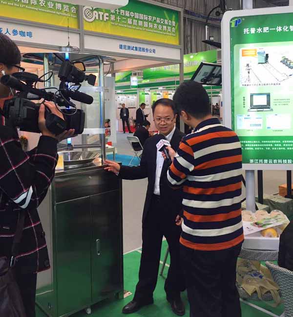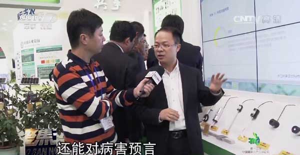 第十四屆中國國際農(nóng)產(chǎn)品交易會正在昆明舉行,央視七套《聚焦三農(nóng)》派出多路記者在現(xiàn)場采訪和體驗(yàn)。在科技展區(qū)浙江托普云農(nóng)科技股份有限公司(以下簡稱“托普云農(nóng)”)的“無線農(nóng)業(yè)氣象監(jiān)測站”吸引了記者的目光。