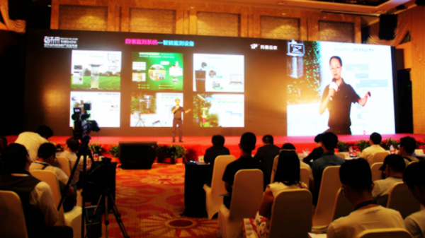 托普云農(nóng)副總經(jīng)理朱旭華在“創(chuàng)未來”軟件及科技創(chuàng)新產(chǎn)品發(fā)布會(huì)上介紹農(nóng)業(yè)四情監(jiān)測系統(tǒng)