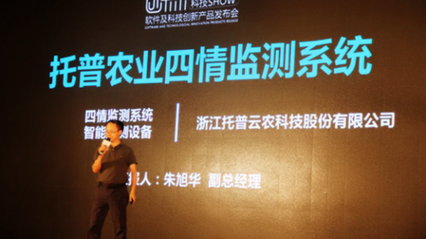 托普云農(nóng)副總經(jīng)理朱旭華在“創(chuàng)未來”軟件及科技創(chuàng)新產(chǎn)品發(fā)布會(huì)現(xiàn)場