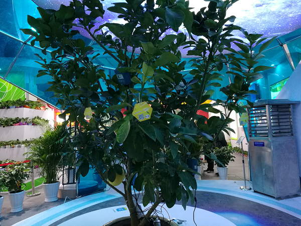 展會現(xiàn)場掛上傳感器的文旦樹
