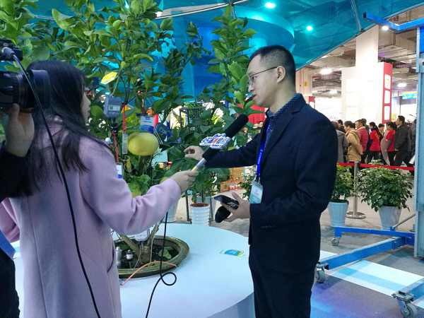 “在這棵文旦樹上,我們安裝了無線葉面溫度傳感器、光照強(qiáng)度傳感器、果實(shí)膨大傳感器。通過這些傳感器采集傳輸?shù)臄?shù)據(jù),我們就能知道整個樹的生長秘密”。展會現(xiàn)場,現(xiàn)代農(nóng)業(yè)與信息化的互融發(fā)展,吸引浙江衛(wèi)視、杭州電視臺、蕭山日報、舟山電視臺、金華電視臺等記者前來采訪。