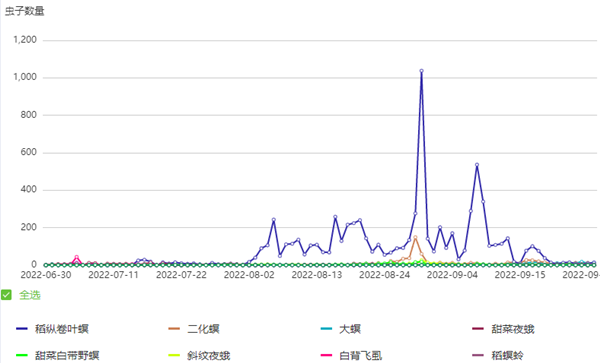 今年8月末,受臺風(fēng)“軒嵐諾”影響,杭州市余杭區(qū)出現(xiàn)持續(xù)大風(fēng)和高濕天氣,托普云農(nóng)智能蟲情測報(bào)燈有效監(jiān)測到稻縱卷葉螟及二化螟蛾峰。