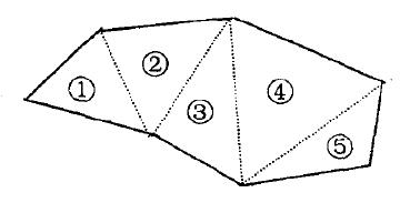 當測區的形狀為矩形時,只需測量長與寬進而求得面積。如果測區的形狀為非矩形的不規則多邊形,需將測區分割成許多三角形,如圖1測量每個三角形的邊長,算出每個三角形的面積,將所有三角形面積累加就得到測區土地的面積。已知三邊計算三角形面積的公式為:S= √ p (p-a)(p-b)(p-C)。(1)其中:a,b為三邊長,p為三角形的半周長。