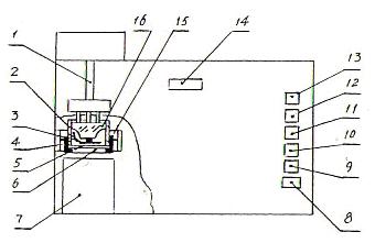 1.7 按動和面鍵(12)和洗滌鍵(11),托架(4)帶動洗滌杯(2)下降,洗滌鉤轉(zhuǎn)動,開始和面顯示器(14)后二位顯示和面的時(shí)間(S)。當(dāng)和面到達(dá)所設(shè)置的時(shí)間(20S)后,托架帶動洗滌杯上升,水泵向洗滌杯內(nèi)供水,開始洗滌面團(tuán),顯示器前一位顯示洗滌面團(tuán)的時(shí)間(min),當(dāng)洗滌到達(dá)所設(shè)置的時(shí)間(5min)后,儀器停止工作,完成洗滌。和面鍵(12)和洗滌鍵(12)也可分開使用,如和面結(jié)束后再按洗滌鍵,儀器開始洗滌。