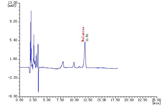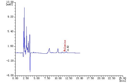 三聚氰胺(Melamine)是一種重要的三嗪類含氮雜環有機化工原料,主要用于生產三聚氰胺-甲醛樹脂,廣泛用于木材加工、塑料、涂料、造紙、紡織、皮革等行業,為白色晶體。三鹿奶粉事件引發了對三聚氰胺檢測的廣泛關注,國家質量監督檢驗檢疫總局和國家標準化管理委員會相繼發布了《原料乳與乳制品中三聚氰胺檢測方法》(GB/T22388-2008)和《原料乳中三聚氰胺快速檢測 液相色譜法》(GB/T22400-2008)的國家標準。本文參考了以上標準并進行配制條件優化,建立了液相色譜檢測法,前處理簡單,檢測限、精密度、重現性以及回收率均符合國家標準。