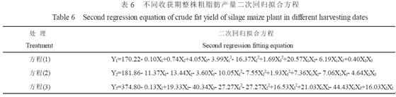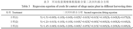 產量和品質是青貯型玉米品種兩個不可缺少的評價因素。青貯玉米的品質, 國內通常采用粗蛋白含量、粗脂肪含量、粗纖維含量、無氮浸出物和灰分含量等指標判斷飼料的營養品質。這種評價方法存在一定的缺欠。目前, 國際上通常根據營養成分、纖維素的類型和動物離體實驗等對青貯玉米品質進行劃分, 常用的指標有粗蛋白含量、淀粉含量、中性和酸性洗滌纖維含量、木質素含量、離體消化力和細胞壁消化力。其中粗蛋白含量可以通過蛋白質測定儀測定,粗脂肪可以通過粗脂肪測定儀來測定,而粗纖維也可以通過纖維測定儀來測出。栽培措施是影響青貯玉米產量和品質的重要因素。國內外研究結果表明, 施肥對玉米子粒的營養品質有顯著影響。在青貯玉米營養品質對密度與肥料的反應方面, 前人的研究尚不系統, 其機理尚不清楚。本試驗通過3 因素最優飽和設計, 研究N、P 與種植密度3 因素與不同收獲時期青貯玉米粗脂肪的關系, 并通過回歸模擬3 因子對青貯玉米粗脂肪含量及其產量的效應, 為實現青貯玉米高產優質栽培提供理論依據。