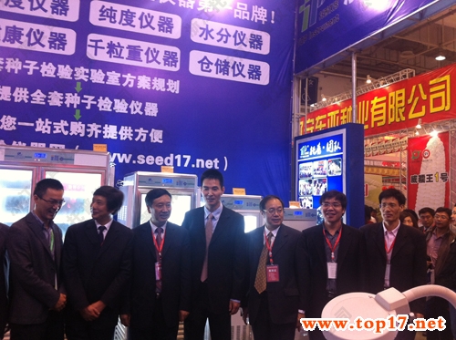 展會期間,全國農技中心種子監督檢驗處支巨振處長,在浙江省省種子站王浩良站長、托普儀器總經理陳渝陽先生陪同下參觀了展會現場。作為全國農技推廣中心質量監督檢驗處的支處長參加此次盛會肯定是必不可少的,支處長不僅是農業種子領域的領軍人物,也為農業種子方面做出了巨大貢獻。支處長編著了《農作物種子認證手冊》、《農作物種子檢驗規程》、《推行種子認證制度促進種子產業發展》等一系列種子類書籍,還做客農業部提出的“科學使用投入品,農資打假保安全”網上論壇活動,在節目現場直接解答群眾的問題,洽談種子檢驗方法,使全國種子檢驗儀器類有了統一的標準化,并且還提出了符合國際標準化種子選種、檢驗的一系列方法。