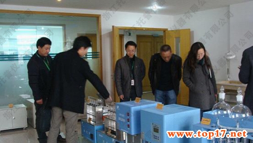圖為:托普儀器相關領導陪同眾位評審專家參觀樣品室