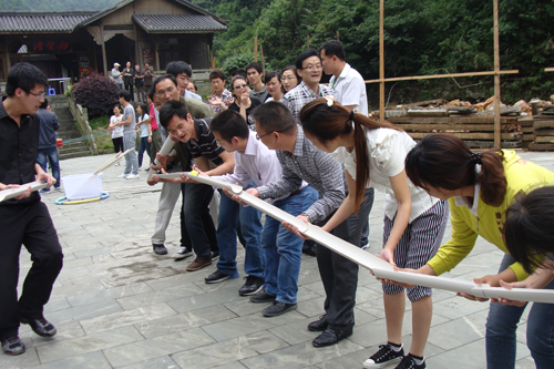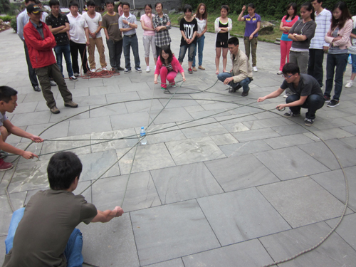 活動項目一:雷區(qū)取水,各團隊必須在規(guī)定時間內(nèi),依靠團隊的協(xié)作和智慧將在雷區(qū)內(nèi)的液態(tài)炸彈(裝滿水的桶)排除,并安全放在雷區(qū)外的彈藥庫;項目二:極速60秒,教練在一個限制區(qū)內(nèi)放置了30張未知的數(shù)字信息,各隊成員需派出一名隊員,要在兩次進入限制區(qū)的機會內(nèi)將這些數(shù)字信息有小到大的撿出并且排列好;項目三、挑戰(zhàn)五分鐘,隊員需在五分鐘內(nèi)挑戰(zhàn)完成各個項目;項目四:畢業(yè)墻,全體隊員要在不借助任何的物品與工具下,在規(guī)定時間內(nèi)翻越一堵高四米的墻。這些項目看似簡單,卻處處需要智慧。各個隊員親身體驗,參與各個項目之中,并在這種特定環(huán)境中去思考、去發(fā)現(xiàn)、去領(lǐng)悟,進而對自己、對同事、對整個托普大家庭重新認識、重新定位。
