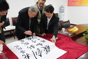圖為:中國科學(xué)院院士、原浙江農(nóng)業(yè)大學(xué)校長、中國核農(nóng)學(xué)創(chuàng)始人陳子元院士(右二),全國農(nóng)業(yè)技術(shù)推廣中心栗鐵申副主任(中間),全國農(nóng)業(yè)技術(shù)推廣中心節(jié)水處高祥照處長(右一),杭州市拱墅區(qū)區(qū)委常委、區(qū)科技工業(yè)功能區(qū)管委會范永晨書記(左二)在簽名處合影留念