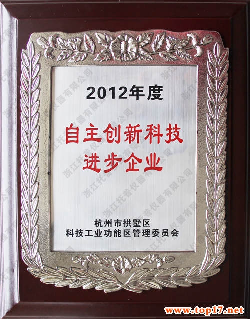 根據(jù)杭州市拱墅區(qū)科技工業(yè)功能區(qū)管委會(huì)研究決定,為了進(jìn)一步引導(dǎo)企業(yè)自主創(chuàng)新,走新型工業(yè)化道路,加快發(fā)展高薪技術(shù)產(chǎn)業(yè),不斷優(yōu)化產(chǎn)品結(jié)構(gòu),特授予托普儀器“自主創(chuàng)新科技進(jìn)步企業(yè)”榮譽(yù)稱號。
