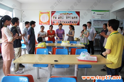 5月25日中午,托普儀器公司二樓員工食堂傳出陣陣“祝你生日快樂”的歌聲,原來,是工會在為3-5月生日的員工過一個(gè)集體生日!
