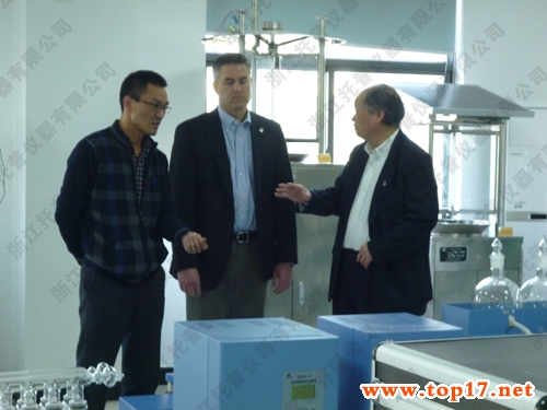 圖為:加拿大泰克資源安德魯·格林教授(中間)、國際鋅協會樊明憲教授(左一)與托普儀器陳渝陽總經理(右一)合影留念