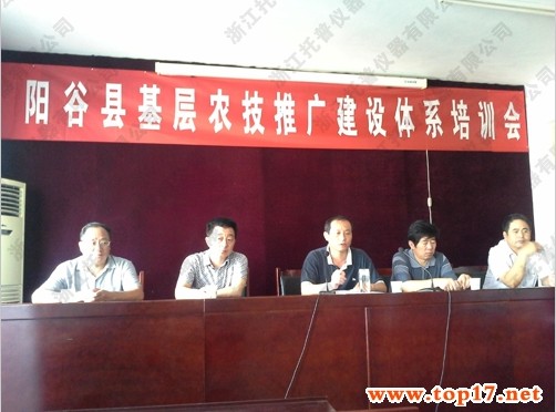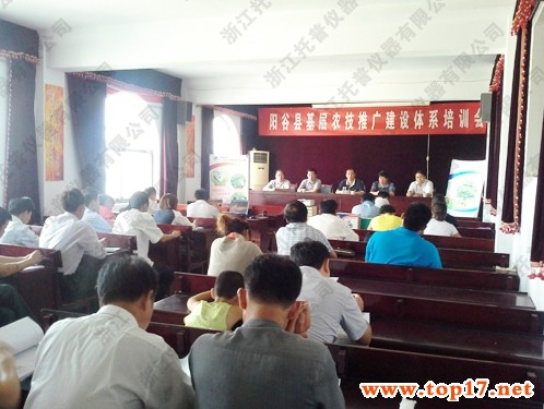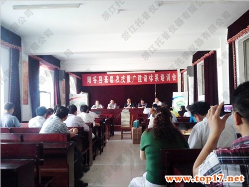 2013年9月14日,山東省聊城市陽谷縣召開“陽谷縣基層農技推廣體改項目儀器設備發放培訓會”,縣農業局楊艾勤書記、農技推廣中心王振東副主任、15個鄉鎮農技站站長以及技術員參加會議。托普儀器技術人員出席本次會議,為參加會議的眾人培訓本公司基層農業儀器設備的操作原理、使用步驟以及保養方法。