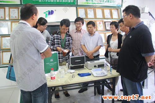 培訓開始時,所有培訓參與者分成兩組,一組在三樓樣品室,一組在四樓實驗室,兩組培訓課程同時進行,浙江托普儀器有限公司四名技術人員全程講解,以化繁為簡的方式展開了此次儀器培訓。