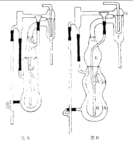 3、冷凝瓶G下部增加一個空腔F,以容納倒吸入的接收液,防止接收液進入蒸餾瓶。