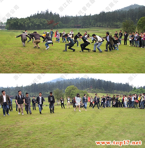 上午的拓展活動(dòng)在園中翠綠色的大草坪上展開,托普儀器近300人的龐大隊(duì)伍被分成了10個(gè)小組進(jìn)行團(tuán)體比賽。兩場比賽分別為“快樂抱抱爆”和“穿越生死網(wǎng)”,雖然游戲的名字和比賽的方式不同,但同樣都是關(guān)于速度與時(shí)間的較量。