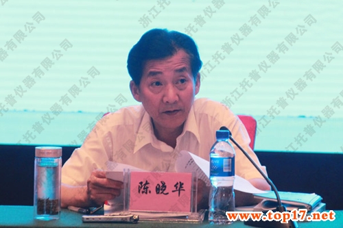 圖為:陳曉華副部長蒞臨托普儀器展臺觀摩并與朱旭華副總經理合影
