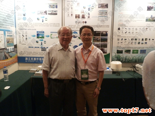 圖為:汪懋華院士蒞臨托普儀器展臺并與朱旭華副總經理合影
