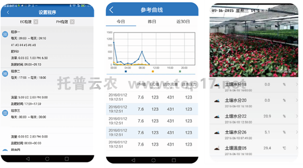 ⑦可接所有的環境、土壤、水質等傳感期,實現遠程控制溫室的風機等設備