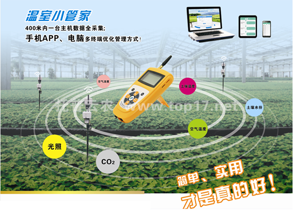 溫室小管家又叫農業環境在線監測儀可接土壤、氣象、作物本體等幾十種傳感器,采集數據可本機查看,亦可上傳至智慧云平臺和手機APP,方便隨時查看;帶語音報警和數據播報功能,可播報超限環境信息;可設置自動采集,實現無人值守不間斷數據采集;最多可存8000組數據,亦可配內存卡不限量儲存。小巧便攜,是設施農業中實用、高性價比的溫室小管家。